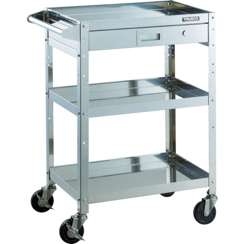 TRUSCO ステンレスワゴン クリーンラビット 100φ導電車SUS金具ハンドル付 引出付