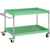 ●最大積載量(kg/台):150●均等積載量(kg/段):120●色:ヤンググリーン●間口(mm):1020●奥行(mm):600●高さ(mm):600●段数(段):2●支柱径(mm):25.4●キャスター径(mm):キャスター:自在式 100mm(2個) 自在式(Wストッパー付) 100mm(2個)●こぼれ止め高さ(mm):50●間口:1020●奥行:600●高さ:600●最大積載(kg/台):150