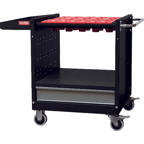 ●ツールホルダーベンチが25度まで回転できるので、収納・取り出ししやすいツーリングワゴンです。