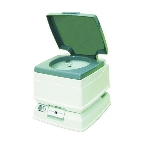 基礎工事不要の上部(水洗用水)と下部(汚物用)の2層式ポータブル水洗トイレです。
