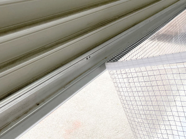 別途のマジックテープをシャッター下部の水切り部分に貼るだけで簡単に取り付け可能です。 工具不要で簡単に取り付け、取り外しが可能です。