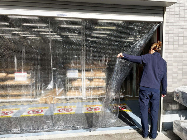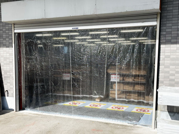シャッターを開放しなければならない現場で、手軽に外気を遮断できるほか、防虫・採光対策なども可能!