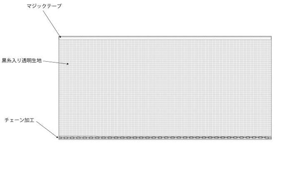 標準仕様でカーテン下部にチェーンが入っております、風によるあおりやばたつきを防ぎ、間口にぴったりフィットします。