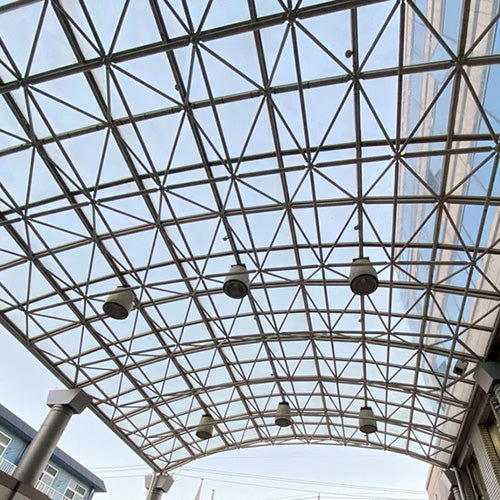 耐衝撃強度に優れ、ガラスと同等の透明度がある採光材です。さらに平板の両面に特殊耐候処理を施し、紫外線による品質劣化を防いでいるため、変色も少なく長期にわたって使用できます。外観に優れ、高耐候シート特有の表面の歪みがほとんどありません。