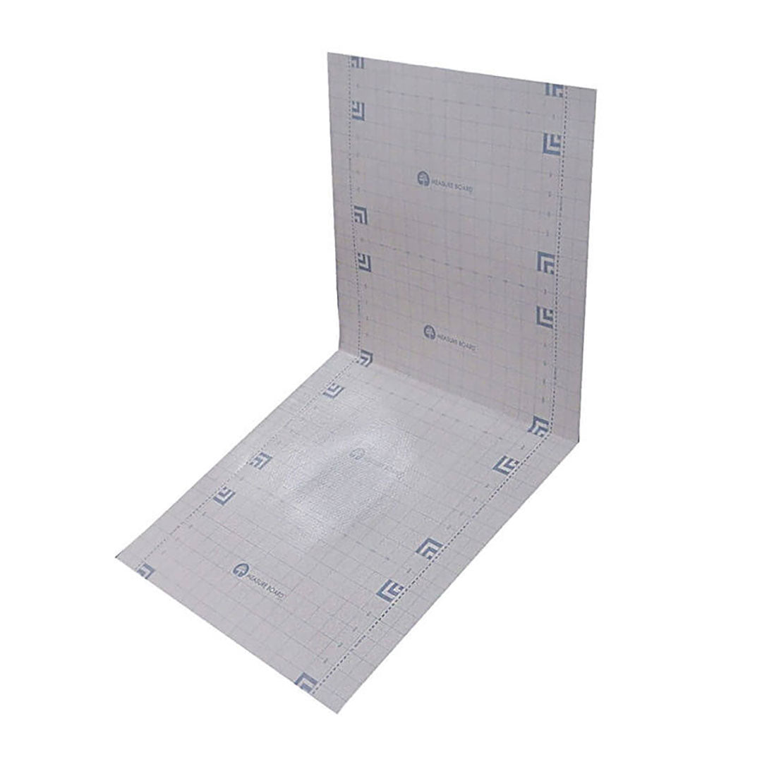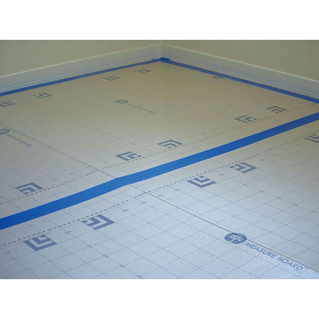 メジャー機能付きの便利な養生ボードです。400mm間隔でミニメジャーが印刷されており、レイアウト確認やカット作業時の目安に最適。折り曲げ線に沿って曲げることで廊下幅にも対応します。目盛とライン入りで定規なしでも正確にカットでき、用途に合わせてサイズ調整が可能。水をはじいて汚れにくく、2つ折り仕様で持ち運びや収納も簡単です。ミニメジャーの格子はすべて50mm角に設計されています。