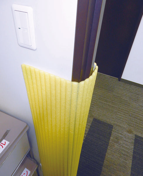 曲面にも角にもフィットする発泡ポリエチレン製の衝撃吸収材です。柔軟性が高く、複雑な形状部分の養生にも最適。軽量で作業性に優れ、カッターなどで簡単にカットできます。床や柱、壁など多様な箇所の保護に幅広く活用できる便利な養生材です。