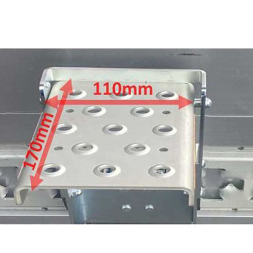 トラックあおり用昇降設備でトラックレールへ取り付けることができる脱着式のステップです。
