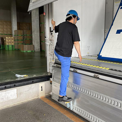 1、昇降の際は荷台の取っ手等を持ち必ず手と足で三点支持を確保するようにしてください。
