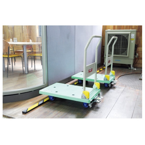 ■床に置いてカゴ車の思わぬ動きを抑止し、荷物の積みおろし作業時の事故を防ぎます