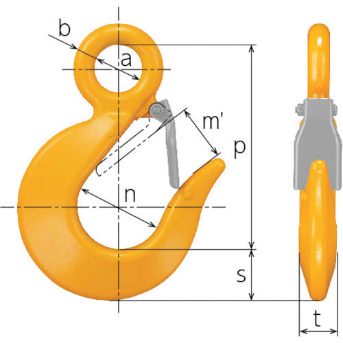 ■安全レバー付の吊り荷側用フックです。