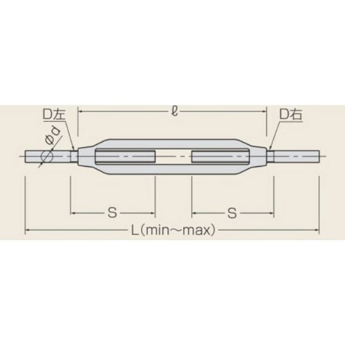 ■ターンバックルは、右ネジと左ネジを一回転で一度に締め付ける便利な締付金具です。