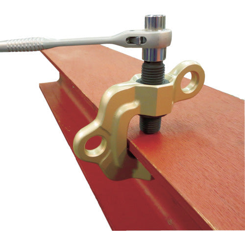 ●横吊り使用時にねじが上部に配置されているので締め込み作業が容易に行えます。(上部のH鋼梁に取り付けて使用する場合も同様に締め込み作業が容易に行えます。)●スクリューを締め込むと円形カムが回転しながら吊り荷に喰い込む機構により、確実なクランプ力を発揮します。