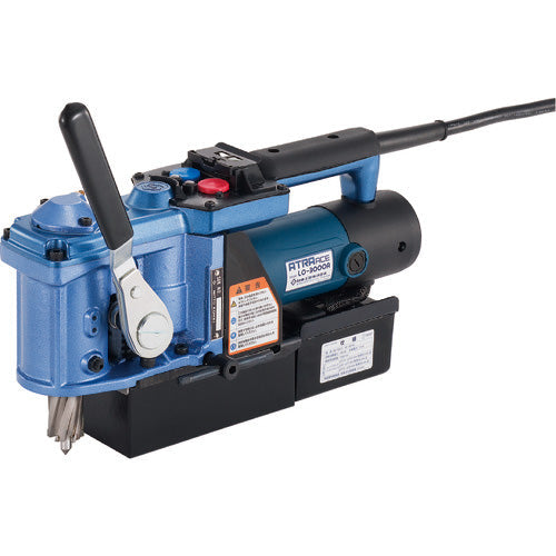 【LO-3000A】●小型・軽量で現場搬入、移動が容易です。●穴あけ位置合わせの調整機能付です。(前後・左右:10mm)●モーター過負荷時停止機能付です。●ラチェット式送りハンドルは左右どちらにも装着可能です。●H鋼100mmのウェブに吸着可能なマグネットサイズです。