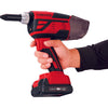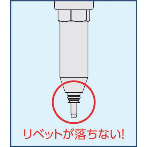 ●最速エアーリベッター並みの超高速リベッティングです。●取り回しに優れ、腕が疲れにくい軽量ボディです。●リベット保持機能付ノーズピース標準装備で、下向き作業も楽にできます。●新開発のブラシレスモーター採用しました。●日常メンテナンスは工具レスでらくらくです。●フル充電1回あたりのリベッティング本数が従来機に比べて大幅に増えました。●ロングストローク 25mmです。●握りやすく重量バランスに配慮したハンドル形状です。●マンドレルコレクターを付けないと作動しない安全設計です。●LEDライトでリベッティング箇所をピンポイント照射します。