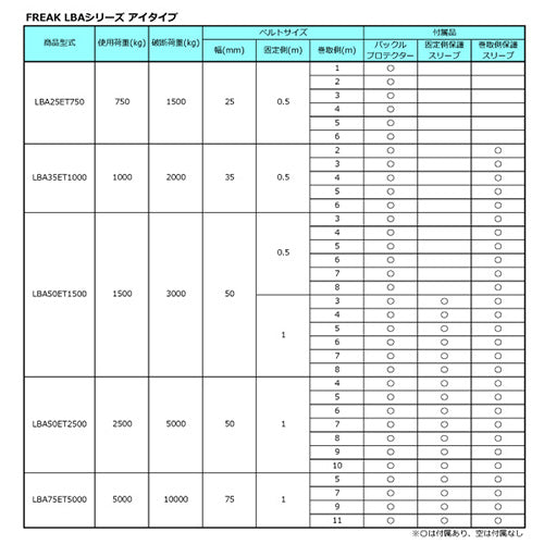 ラチェットバックル式ワッカタイプのラッシングベルト、握り易いバックルと柔軟強度な繊維ベルトで荷に優しく簡単安全に荷締め作業ができます。トラックの荷物運搬に大人気の「FREAKラッシングベルト LBA25ET750 シリーズ」使用頻度も高く安価で何度も使えるおすすめの荷締め機です。