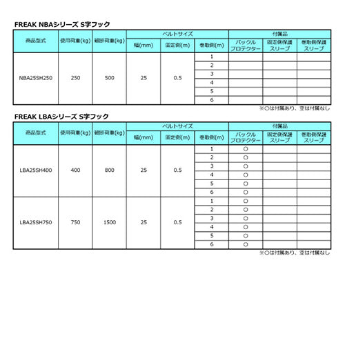 FREAK ラッシングベルト青 S字フック0.75ton 幅25mm