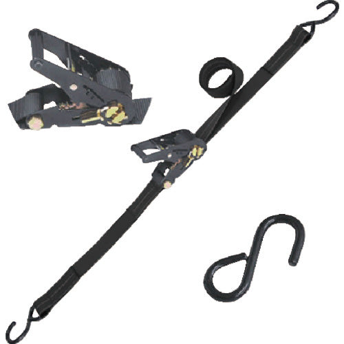 シライ ベルトラッシング(ラチェットバックル式) ベルタイト[[R上]] 黒 端末金具付き(オープンフック付)