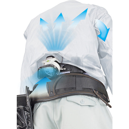 ●ファンで衣服内部に空気を送り込み、循環させる事で汗の蒸発を促進します●胴ベルトを使わない専用ベルト付です。●ウェアクリップ付で服ズレを防止します。●作業着が交換できるので常に清潔です。