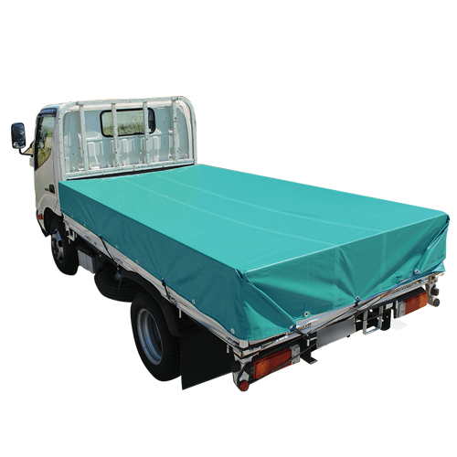 国産のエアスカイを使用したトラックシートです。軽量で強度もあるため大型シートに最適です。耐水圧150%防水性も抜群。しなやかで柔軟性もあります。