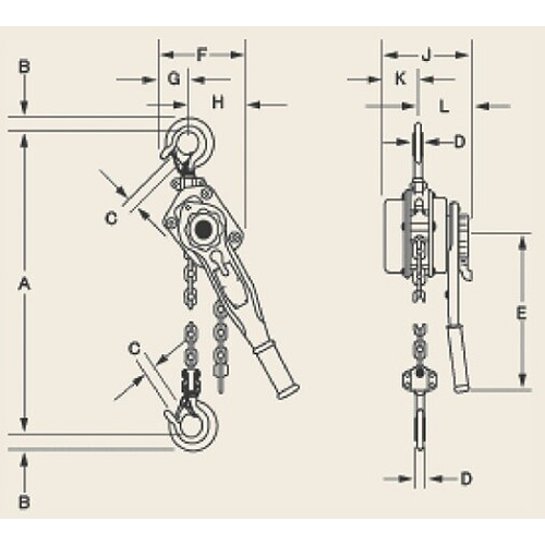 ■上フック、下フックともに鍛造製のラッチが付いており、吊り荷を安全に取り付けることができます。フックはボルト固定のため点検や交換時の取り外しも容易に行えます。