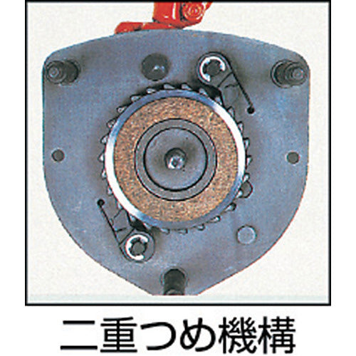 ●軸受けにベアリングを使用し、超強力の焼き入れチェーンも併用しています。●二重カバーで雨水、ちり、ホコリを防御します。●作業性と安全性を追求した上下フックと外れ止め金具付です。●巻き下げ限界を知らせるチェーン止め金具付です。●JIS規格品(JIS B 8802)です。●衝撃に強いギアケース・本体フレームを採用しています。●異物の侵入をシャットアウトするチェンガイド付です。●最小破断応力1000MPaの強力ロードチェンです。