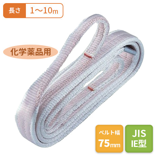 ■耐化学薬品や耐酸に優れた繊維スリングです。化学薬品の運搬などにご使用ください。