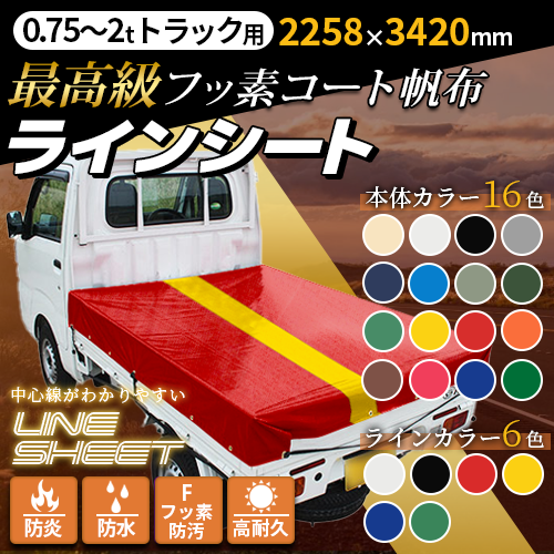 【0.75t/1t/2tトラック用】ラインシート(2258×3420mm)最高級フッ素コート帆布