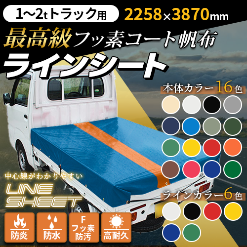 【1t~2tトラック用】ラインーシート(2258mm×3870mm)最高級フッ素コート帆布