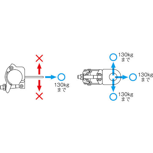 ●φ42.7/48.6の単管、枠組や一側足場に取り付けて、親綱、墜落制止用器具のアンカーやライフブロック、チェーンブロック、滑車などの吊下げに使用できます。