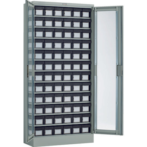 TRUSCO コンテナラックケース バンラックケース L型 両開き扉 導電引出小X72個 H1790