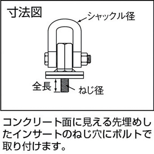 ●ねじ部:合金鋼SNB7を採用しています。●当て座:厚さ9mm×2枚でねじ曲りを防止します。(ボディーは水平方向には回転しません。)●コンクリート製品吊り上げ用。●各種重量物吊り上げ用。●スチール●表面処理:ユニクロメッキ仕上げ