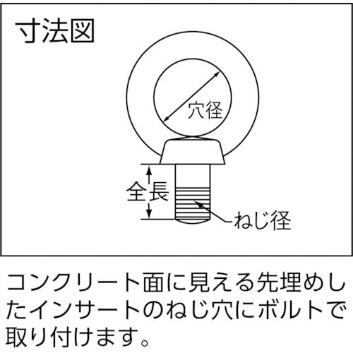 ●一般的に広く使用される安価な吊り具です。●コンクリート製品吊り上げ用。●各種重量物吊り上げ用。●スチール●表面処理:ユニクロメッキ仕上げ