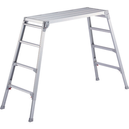ハセガワ 脚部伸縮式アルミ足場台 101〜124cm 天板幅広タイプ