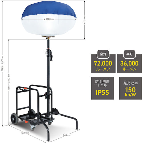 KAZ 輝夜500W LED反射バルーンライト 中型台車仕様 明るさ72000lm
