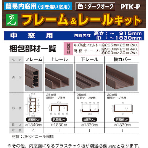 光 簡易内窓用フレームレールキット 中窓用 ダークオーク 防カビ抗菌剤入り