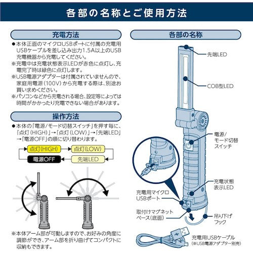 jit マグネット付小型充電式LEDワークライト