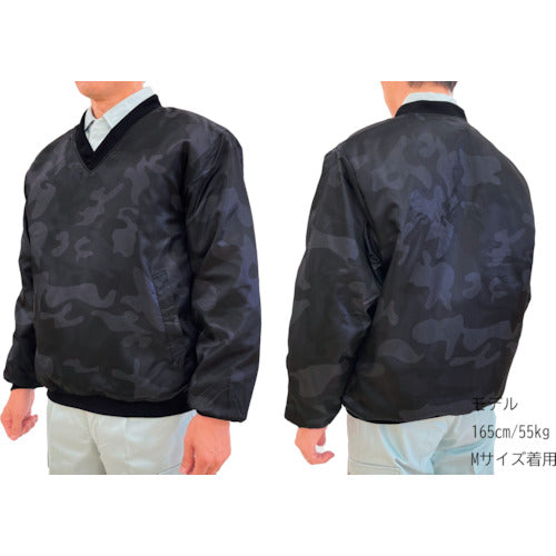 TEAGLES 14695 Vネック中綿キルトヤッケ ブラック迷彩3L