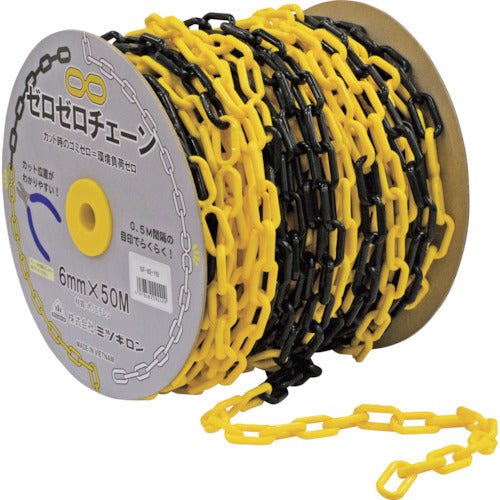 ミツギロン カット時にゴミがでない環境配慮型プラチェーン ゼロゼロチェーン イエローブラック Φ6mm×50m SF−82−YB