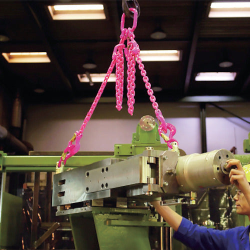 フックに開き限界値を表記しています。ピンクパウダーによる表面処理、本体はメッキ仕上げです。吊り上げながらの反転作業がスムーズに回転します。CEマーク取得品で海外向け金型にも取付可能です。ワイヤーロープ、チェーンスリング、ベルトスリングなど吊り具の種類を選びません。