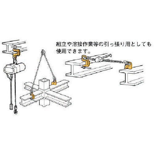 ●吊り上げ・吊り下げ・反転・引っ張りなどあらゆる角度から確実に作業ができます。●円形カムの作動は、マークにより確認ができます。マークは蓄光塗装により視認性に優れています。●吊り上げ荷重に応じて円形カムが傾いて喰い込み接面が大きくなり、強固にグリップします。●NETIS(国土交通省 新技術情報提供システム) 登録商品●チェーンブロック・ホイストなどの吊りピース。●特殊合金鋼