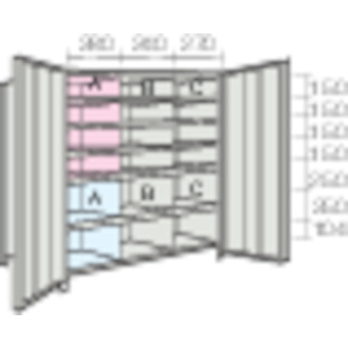 TRUSCO スチールラック 軽量棚両開扉・仕切付 875X383X1200 3列6段 ネオグレー