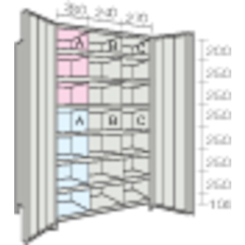 TRUSCO スチールラック 軽量棚両開扉・仕切付 875X533X1800 3列7段 ネオグレー