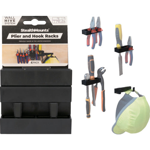 ステルスマウント ウォールハイブシステムプライヤーフックセット(4個入り)ブラック