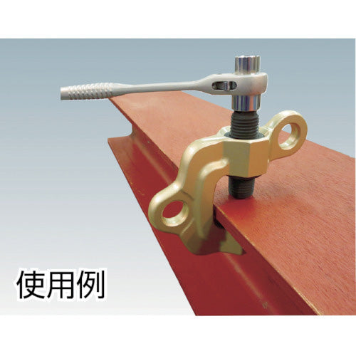 ●横吊り使用時にねじが上部に配置されているので締め込み作業が容易に行えます。(上部のH鋼梁に取り付けて使用する場合も同様に締め込み作業が容易に行えます。)●スクリューを締め込むと円形カムが回転しながら吊り荷に喰い込む機構により、確実なクランプ力を発揮します。
